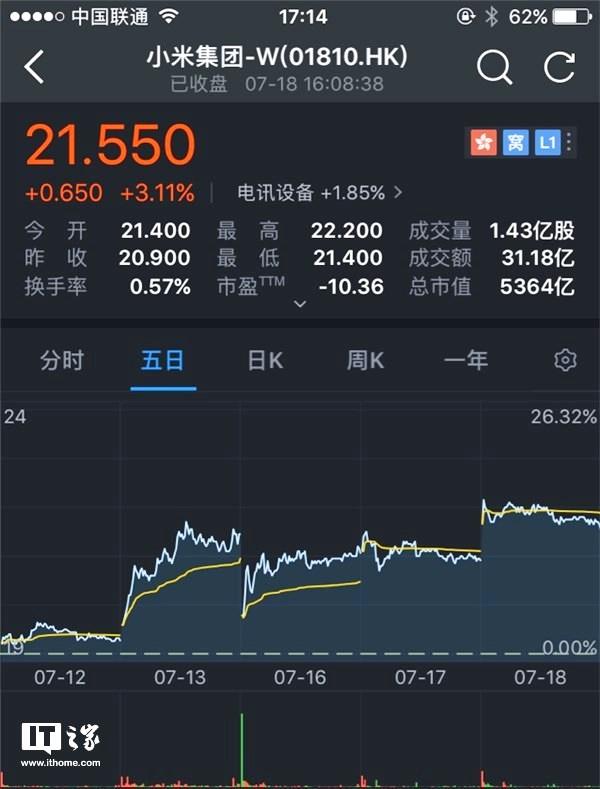 根据最新消息,小米的股价实际上一直在上涨。首先,12月21日,小米股价突破30.85港元,整体市值超过7577亿港元; 12月14日,小米集团创下上市以来新高,达到29.10港元,总市值超过7,000亿港元。 12月23日,小米集团的市值首次突破8000亿港元,继续创下历史新高。截至发稿时,股价报32.00港元,涨幅近8%。