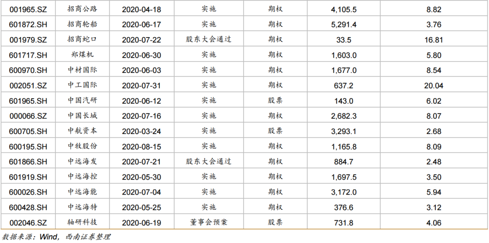 特别是对于投资方向,西南证券建议关注两大主题。其一,本身质地优良,赛道良好,行业地位稳固的国有企业,通过混改和股权激励来增强竞争力;其二,能够大幅提高股权激励上限,提高股权激励规模。